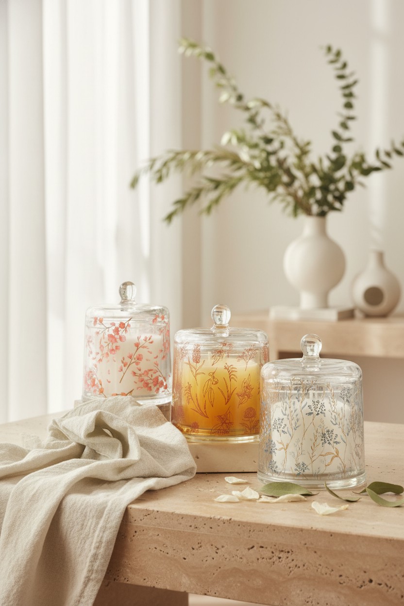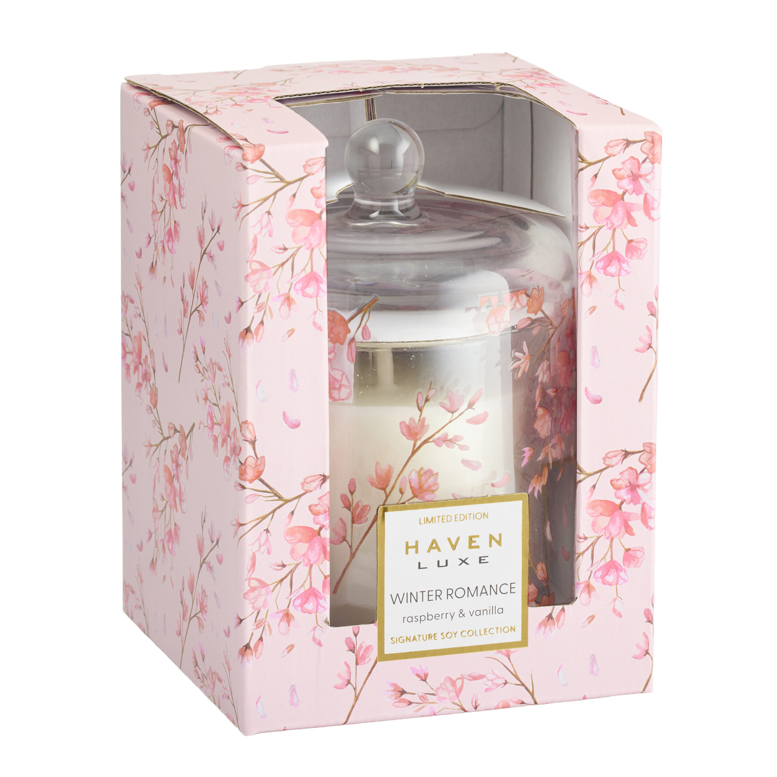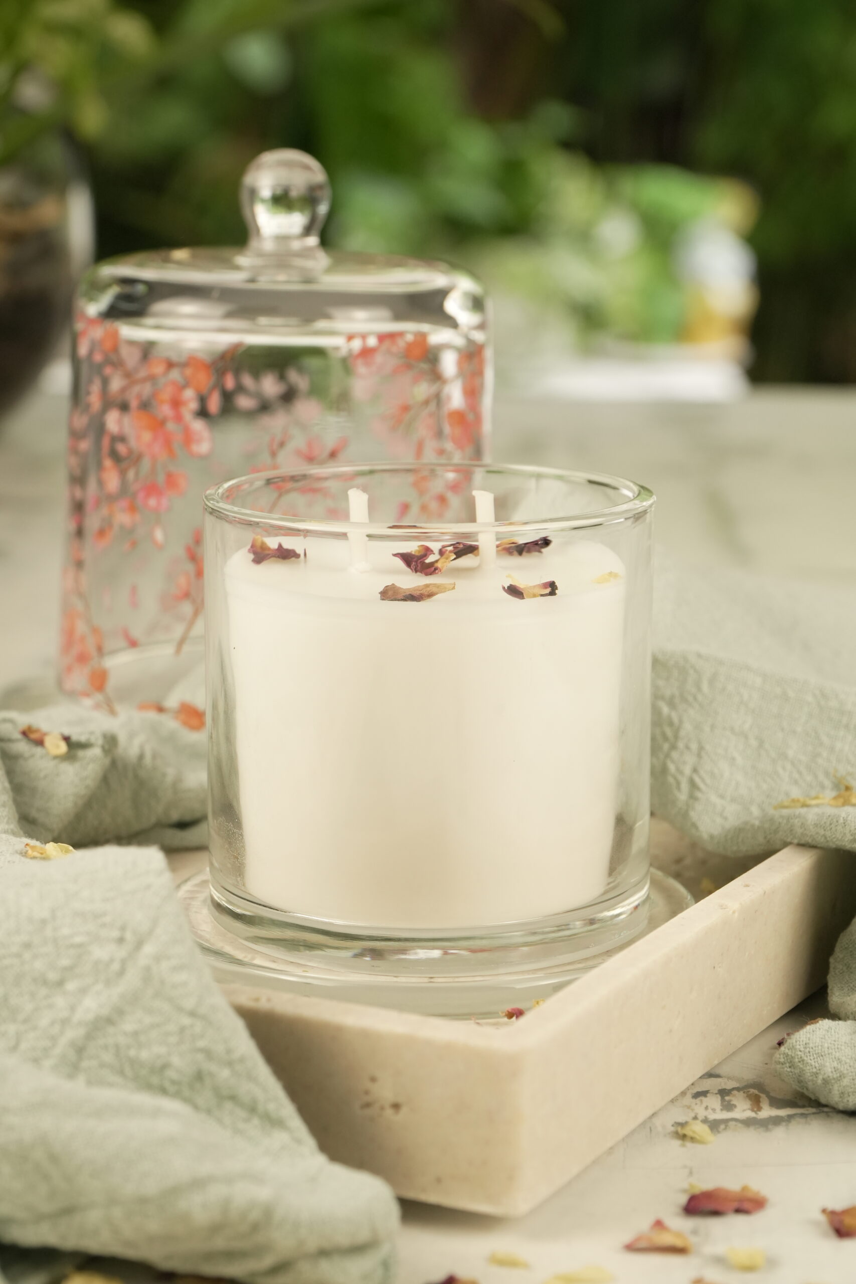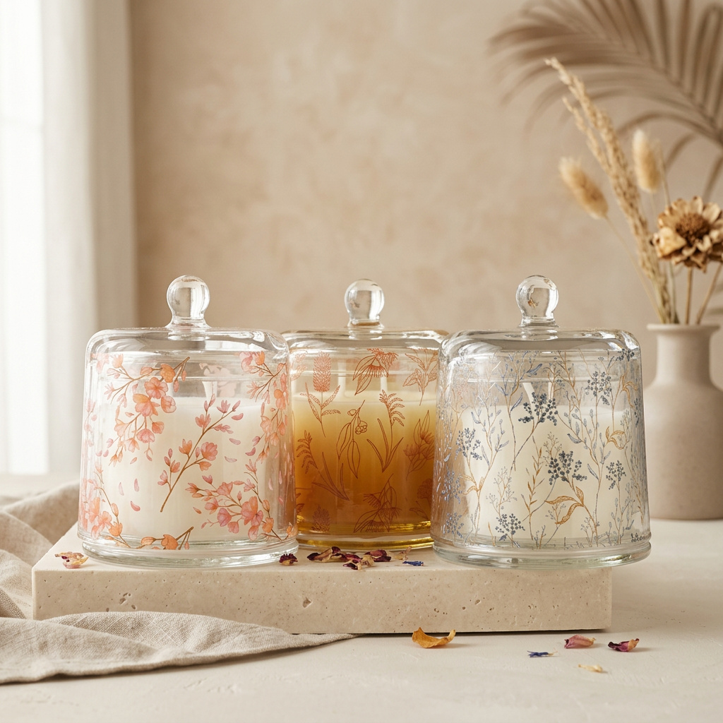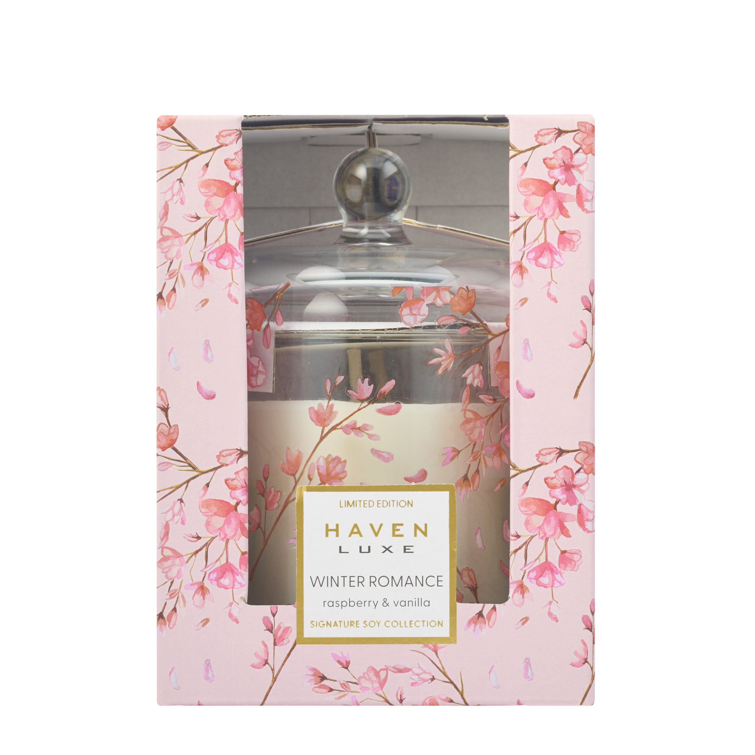 Soft, sweet, and effortlessly elegant, Winter Romance is designed to bring warmth and charm to winter evenings. Presented in a clear glass dome with a floral decal, this candle adds a refined decorative touch to any space. Two wicks ensure an even, gentle burn that fills the room with an inviting fragrance.